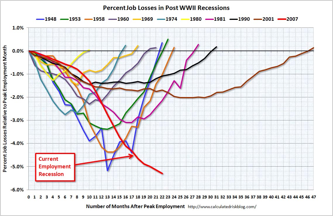 The economy is starting to lose jobs at a slower rate. But this late in a typical recession it wouldn’t still be losing jobs at all.