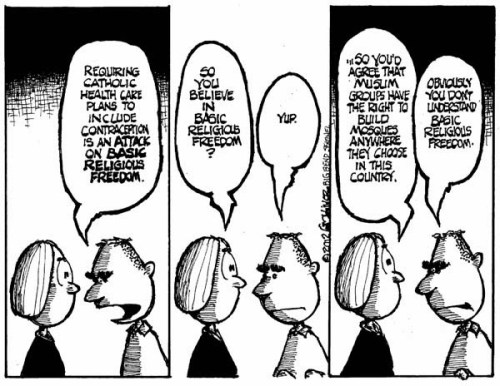 I’m sure many people thought that commenter had launched a devastating barb, exposing a blatant example of Republican hypocrisy. Because we all know what religious freedom used to mean: Even if your religious community is small and powerless, no one can stop you from meeting. The government can’t tax you to support the views of other sects, or use the public schools to indoctrinate your children in the majority faith. In any legal proceeding, your religion does not count against you.