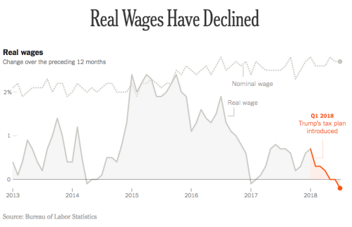 This morning the NYT editorial board assembled a compelling collection of graphs and charts to make a point that gets a little clearer all the time: The Trump tax cut is doing great things for stockholders and executives, but nothing at all for workers.