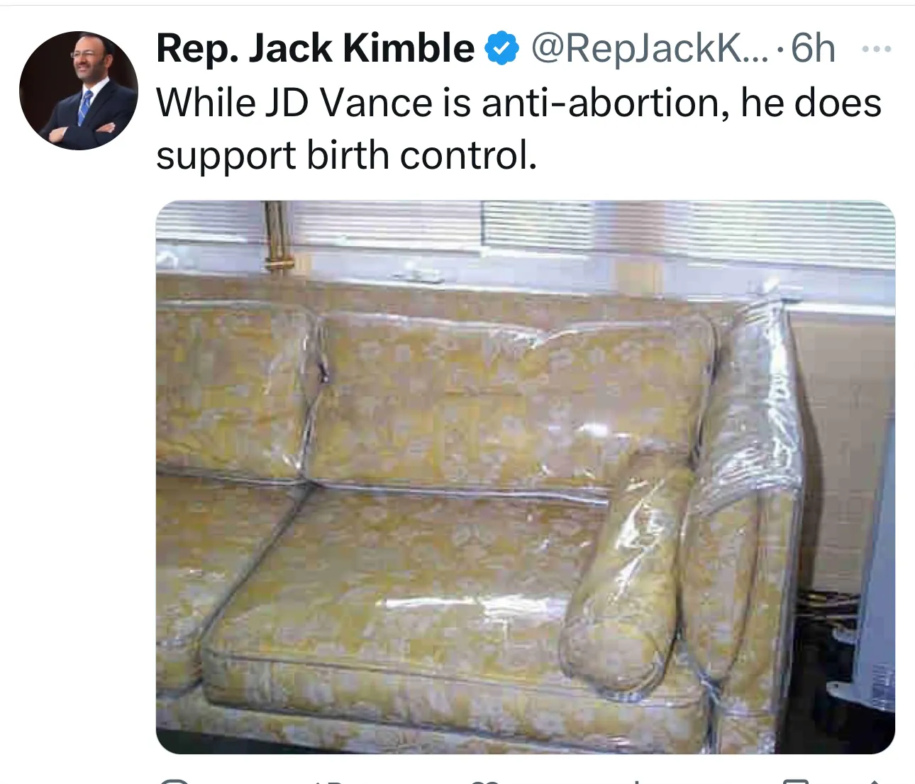 My daughter was explaining to my wife (who is not on social media) how clickbaity (?) Vance’s love of sofas is. Most people know it’s a lie, but he’s such, in your word, “an asshole” over what he HAS said (cat ladies, and that weird defense of his wife – https://www.yahoo.com/news/jd-vance-acknowledges-white-supremacist-200646486.html) that our schadenfreude has kicked up to 11.
