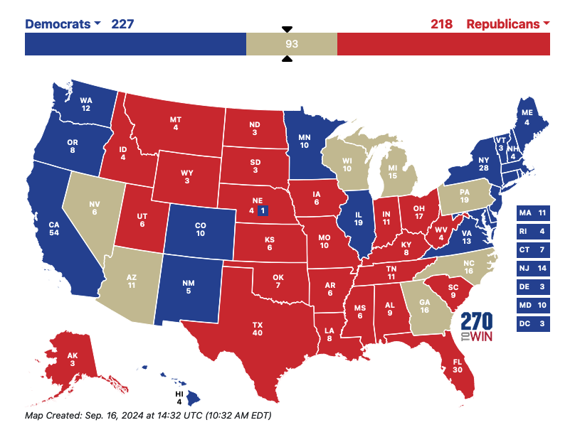 Meanwhile the Harris campaign understands that its most direct path to victory consists of Wisconsin, Michigan, and Pennsylvania. But they are also putting significant resources into Georgia, Arizona, and North Carolina.