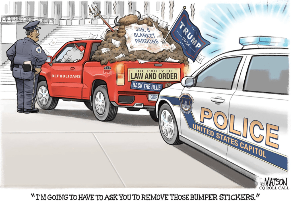Legitimate orders. Presidential pardon power is essentially unchecked, so Trump’s pardon of all 1250+ January 6 criminals is a done deal. That includes the people convicted of seditious conspiracy, as well as the folks who sent more than 100 police to the hospital.