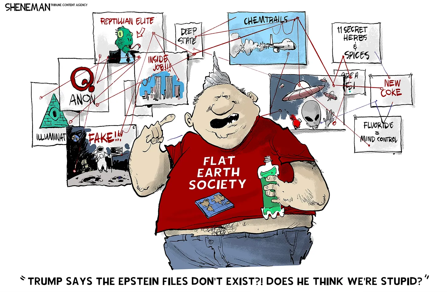 But if members of his cult have briefly stepped outside his mind control, encourage them to stay there. If you don’t believe him when he says the Epstein stuff is a “hoax”, maybe you should re-examine all the other “hoaxes” he has claimed, from climate change to the well-established facts that Biden won the 2020 election and Russia interfered in Trump’s favor in 2016.